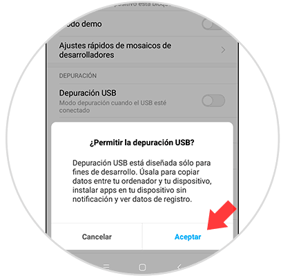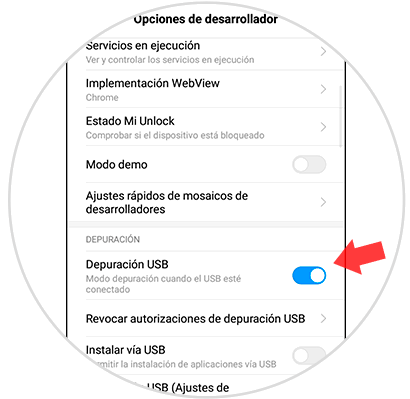 A partir de aquí, debemos buscar la opción de “Depuración de USB”, y deslizar la pestaña para activarla o desactivarla.