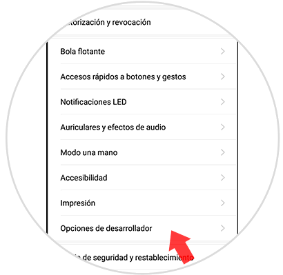 Al bajar, serán visibles las “Opciones del desarrollador”, sobre la que debes pulsar para continuar.