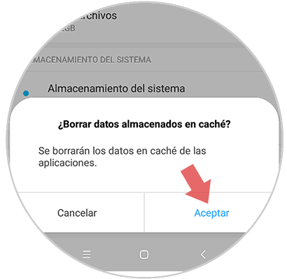 Nos preguntará la confirmación del borrado de la memoria caché de todas las aplicaciones de nuestro teléfono. Pulsamos en Aceptar para que se haga el borrado.