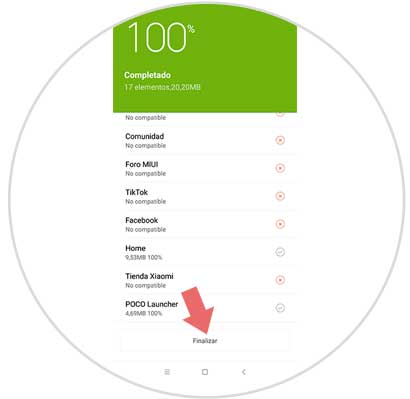 En este momento, se dará inicio al proceso de backup de todos aquellos elementos que hayas seleccionado anteriormente. Al concretarse esto, debes seleccionar en “Finalizar”.