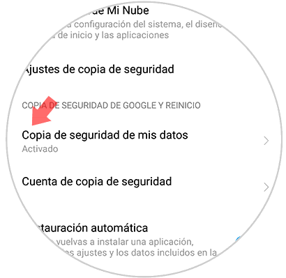 Una vez hecho esto, se hará visible en pantalla la opción de nombre “Copia de seguridad de mis datos” y selecciónala.