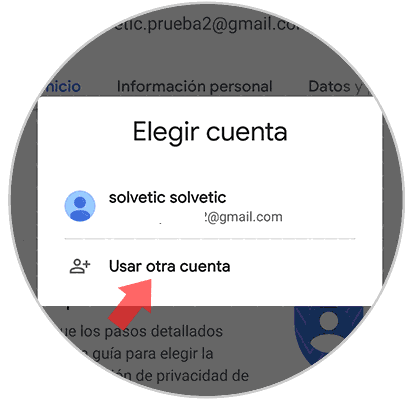 Debemos hacer clic sobre el nombre de la cuenta que se desea cambiar, ahora se desplegara la opción “Usar otra cuenta”.