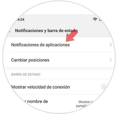 Podemos observar varias opciones entre las que se encuentra “Notificaciones y barra de estado” debemos pulsar allí.