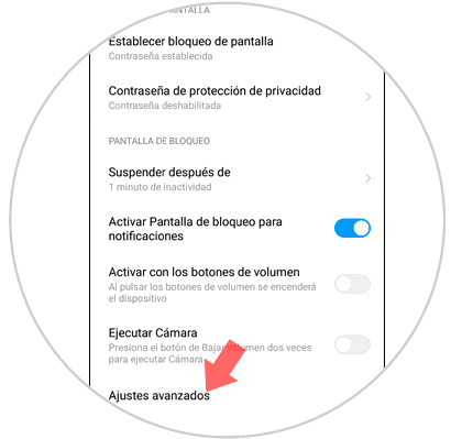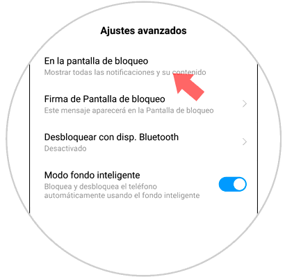 Dentro de estos ajustes avanzados, en primer lugar verás la opción de "En la pantalla de bloqueo". Pulsa para configurar esta opción.
