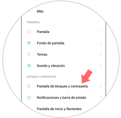 Una vez dentro de los Ajustes, desliza hasta la opción "Pantalla de bloqueo y contraseña" y pulsa sobre ésta para continuar.