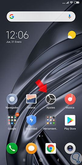 Iniciaremos haciendo clic sobre en icono identificado con un engranaje o lo que es lo mismo “Ajustes” del teléfono móvil.