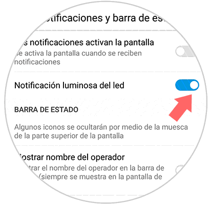 A continuación, verás que la segunda opción que te aparecerá tiene por nombre “Notificación luminosa del LED”. Esta misma es la que permite que al recibir notificaciones se active el flash en la parte delantera para avisarte.