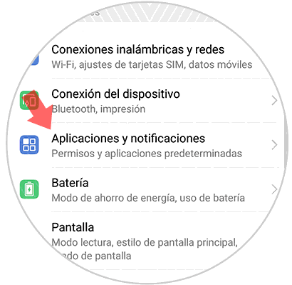 A continuación, tienes que ir a la sección “Aplicaciones y notificaciones”, la cual está debajo de “Conexión del dispositivo” y encima de la opción de “Batería". Pulsa sobre la opción.