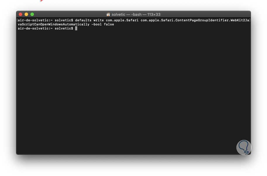 Para habilitar todas las ventanas emergentes ejecutamos la siguiente línea y pulsamos Enter de nuevo. Así, hemos dos opciones para bloquear las ventanas emergentes en Safari para macOS.