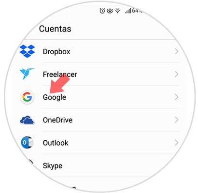 Una vez seleccionada esta opción veremos el siguiente listado de apps con cuentas y allí seleccionamos Google:
