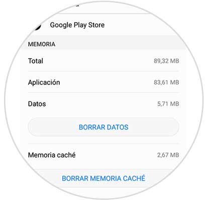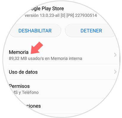 Allí pulsamos en la opción Memoria y en la siguiente ventana será posible borrar tanto los datos como la memoria cache de Google Play: