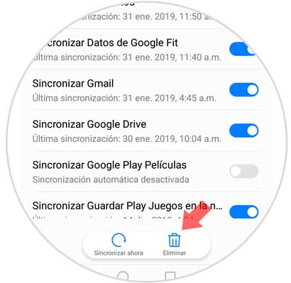 Luego de esto, seleccionamos la cuenta de Google asociada a Google Play con error y pulsamos en el botón Eliminar: