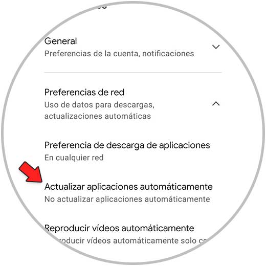 Allí pulsamos en la opción Actualizar aplicaciones automáticamente: