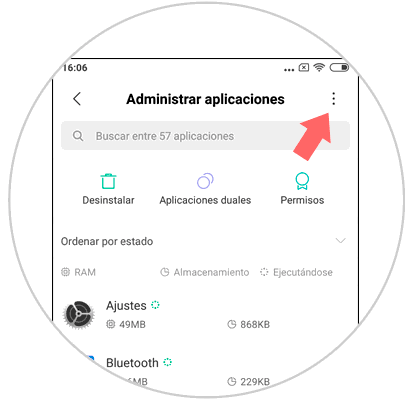 Aparecerás en la siguiente pantalla, donde deberás pulsar en el icono de los 3 puntos situado en la esquina superior derecha de la pantalla.