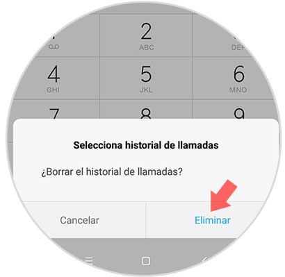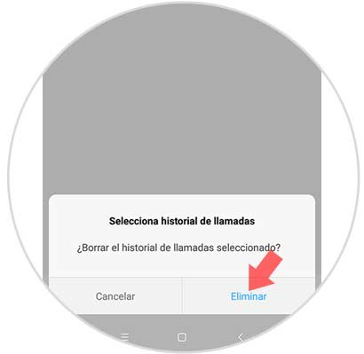 Finalmente veremos una ventana emergente en la que se nos pregunta si queremos borrar el historial de llamadas seleccionado. Debemos seleccionar "Eliminar" para concluir con el proceso.