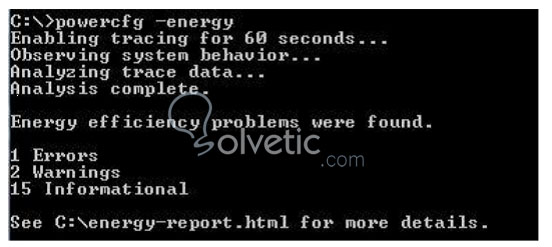 - Luego en la consola colocamos el siguiente comando “powercfg –energy” y presionamos enter.