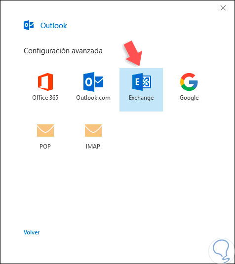 En la siguiente ventana seleccionamos "Exchange":