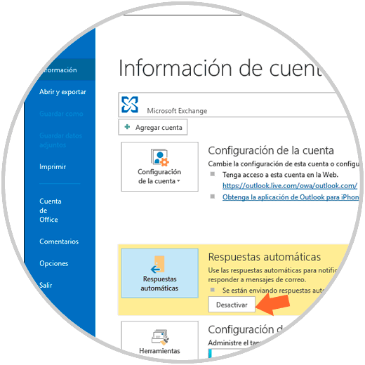 En la sección Información veremos que están activas y allí disponemos de un botón "Desactivar" para prevenir que las respuestas automáticas sigan siendo enviadas.