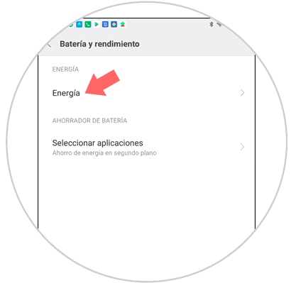 Al acceder a esta característica, notarás como tu dispositivo te presentará todas las opciones de configuración de batería y energía disponibles, entre estas, podrás ver una titulada como “Energía” pulsa sobre ella.