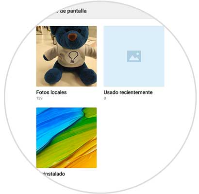 Posterior a esto, podrás notar una serie de carpetas. Deberás seleccionar alguna para poder ver las fotografías que se encuentran disponibles y luego tienes seleccionar la imagen que deseas establecer como tu fondo de pantalla. Entre estas carpetas, se encontrarán: