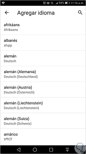 Si necesitamos añadir un nuevo idioma, pulsamos sobre la opción “Agregar idioma” y en el listado desplegado seleccionaremos el deseado: