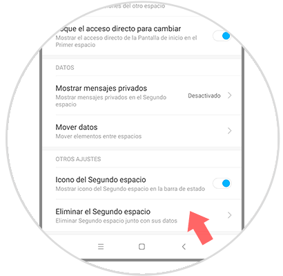 De nuevo será necesario que ubiquemos la opción del “Segundo espacio” dentro de los ajustes del teléfono móvil.