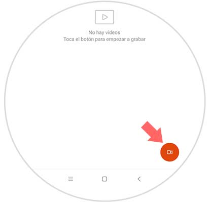 Una vez dentro de esta misma pestaña, veras que (si no tienes ningún vídeo en tu móvil), se te mostrara una ventana vacía, por lo que, en este caso tienes que ir a la parte inferior derecha de la misma, y presionar el icono que ahí aparece, el cual es el mismo que el de la “Grabadora”.