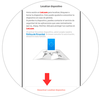 Aquí verificaremos que está activada la localización de dispositivo en la parte inferior.