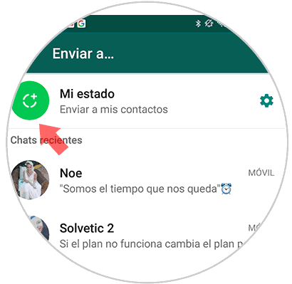 Verás que se te abre la App de WhatsApp. Selecciona en la parte superior el símbolo de “Mi estado”.