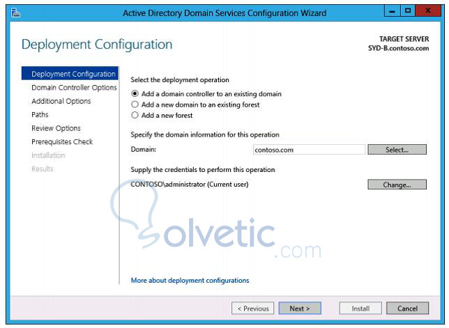 - 2 - Correr el asistente de configuración de servicios de dominio de Active Directory para agregar un controlador de dominio a un dominio existente, con esto vemos que el controlador de dominio de solo lectura no puede ser el primer controlador de dominio en un dominio.