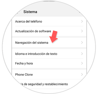 Ahora se desplegará una lista donde se muestran diversas opciones entre las que debemos escoger “Navegación del sistema”.