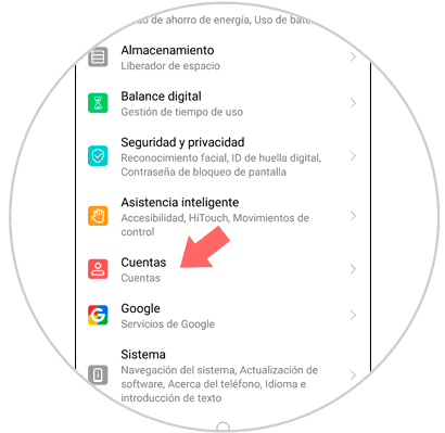 Cuando accedas a esta última herramienta, se te mostrara un panel de opciones, tienes que dirigirte directamente a la sección inferior, y buscar la pestaña de “Cuentas”, la cual se encuentra representada por un símbolo de color rojo con el icono de un usuario. Pulsa para continuar.