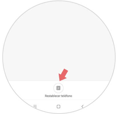 Posteriormente, se muestra en la parte inferior de la pantalla, un pequeño círculo con un botón que dice “Restablecer teléfono” allí debemos hacer clic.