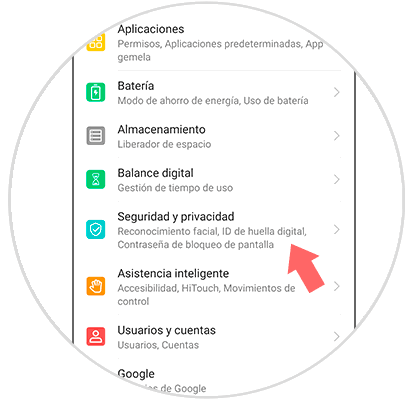 A continuación, deberás desplazarte entre las opciones que aparecen en las configuraciones y pulsar sobre el apartado que dice “Seguridad y privacidad” para acceder a las opciones correspondientes.