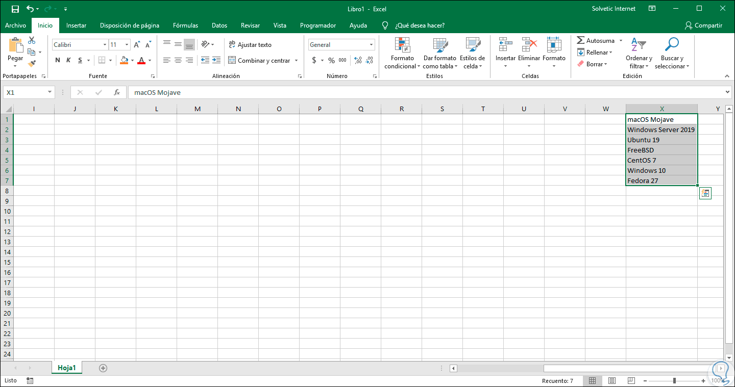 Para este caso tenemos una pregunta en la celda A1 asociada al tipo de sistema operativo usado: