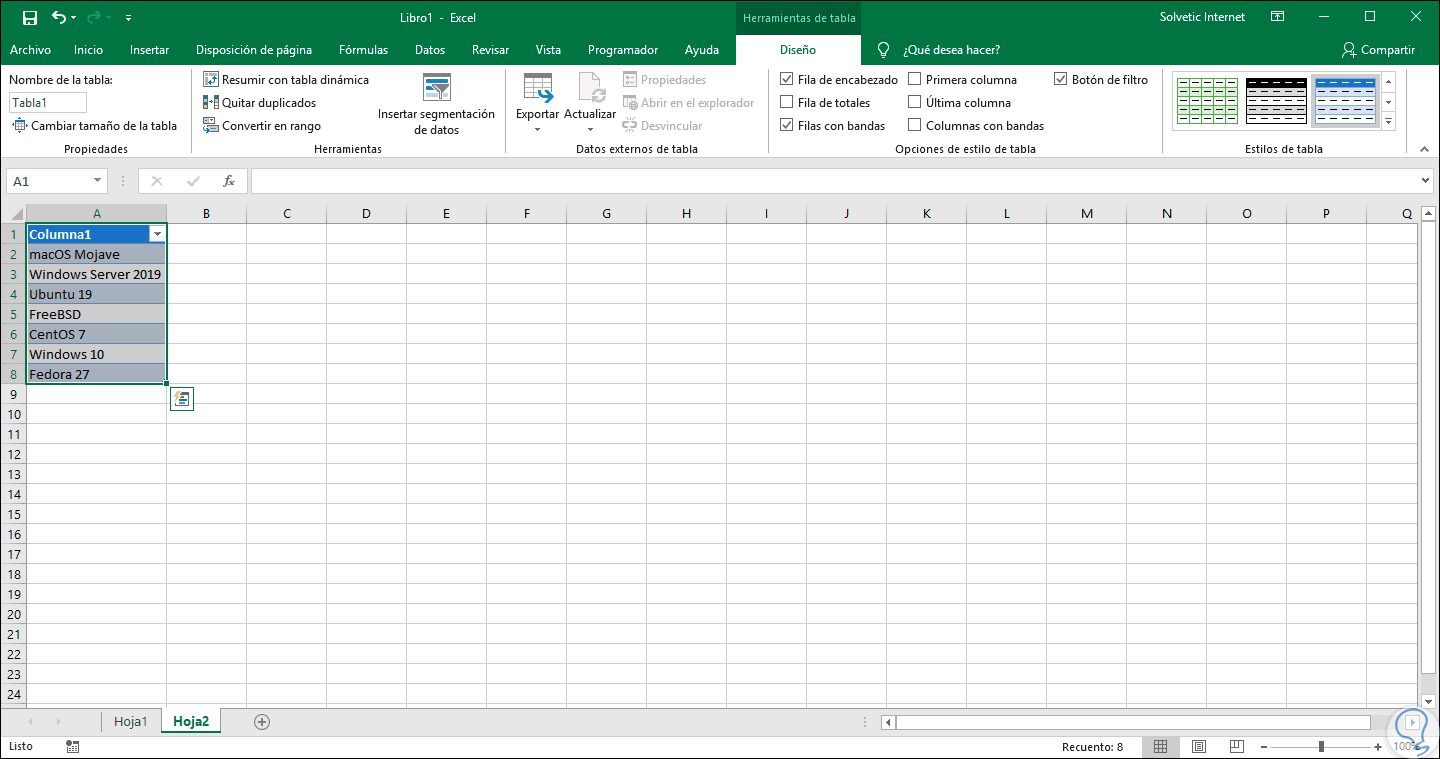 Un consejo para optimizar los resultados, aunque no es obligatorio, es mostrar los elementos en formato de tabla, esto lo logramos seleccionando cualquier celda del rango donde están los valores y pulsando las teclas siguientes: