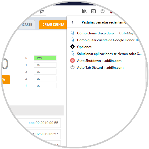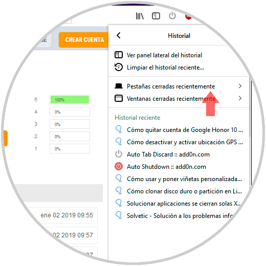 2. Recuperar la última pestaña cerrada en Firefox Quantum