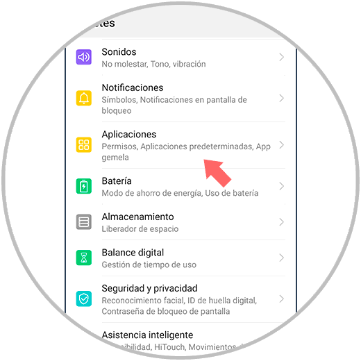 Luego de eso, se abrirán todas las demás configuraciones, debes acceder a la primera opción que dice “Aplicaciones”.