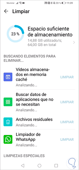 2. Gestionar memoria caché de todo el sistema en Honor 10 Lite