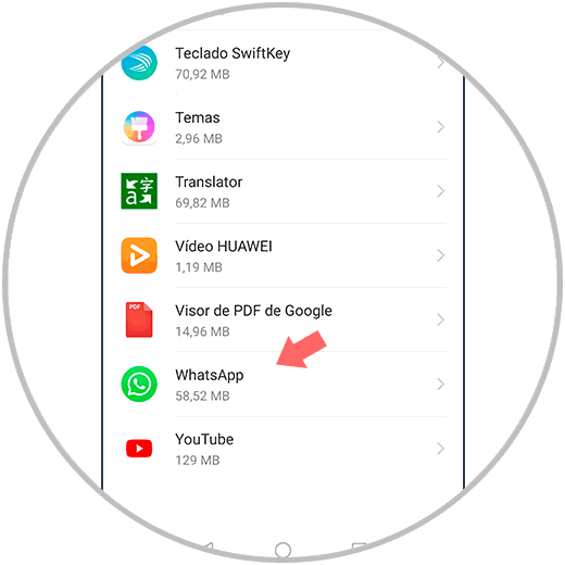 Van a aparecerte todas las aplicaciones que tienes instaladas en tu Huawei. Selecciona aquella en la que quieres eliminar la memoria caché.