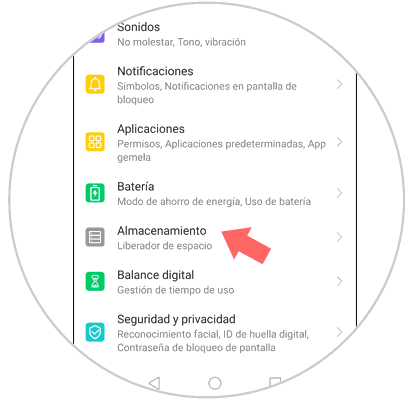 Esta vez, debes buscar dentro del menú, la opción de “Almacenamiento”, la cual se encuentra representada por un icono de color gris, y luego tienes que pulsar sobre ella.