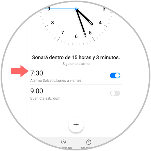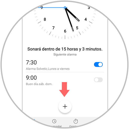Se abrirá una pantalla en donde se podrá gestionar todo lo relacionado con las alarmas, cronometro o temporizador. Tendrás la opción de crear una nueva alarma o editar alguna que ya tengas allí. Para agregar una, solo debes pulsar sobre el símbolo de “Más” para añadirla.