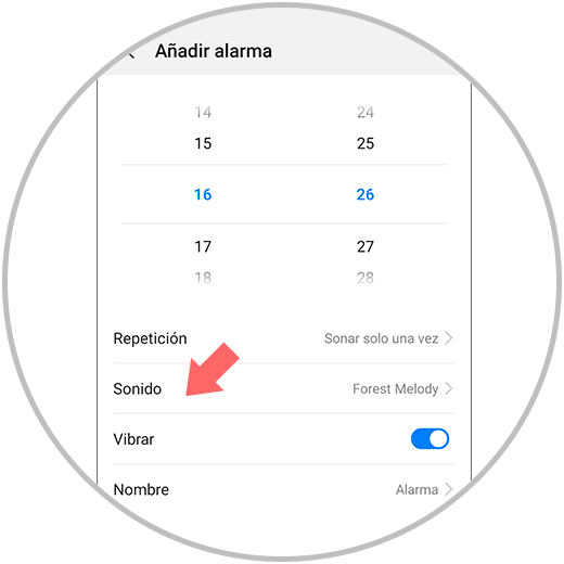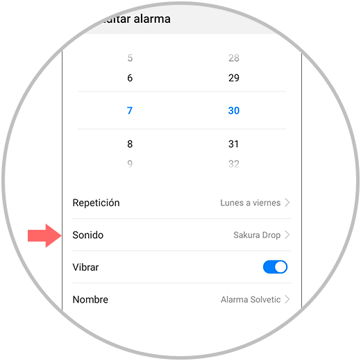 Dentro se encontrarán las mismas configuraciones que aparecían cuando creabas una nueva alarma. Pulsa sobre la opción que dice “Sonido”.