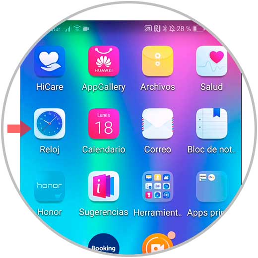 Ve a la pantalla principal de tu dispositivo móvil y pulsa sobre el icono de “Reloj” entre tus aplicaciones.