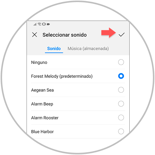 Luego de que hayas escogido el sonido que deseabas, pulsa sobre el check que se encuentra en la esquina superior derecha para confirmar la configuración.