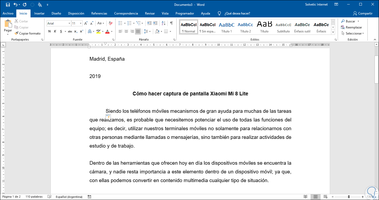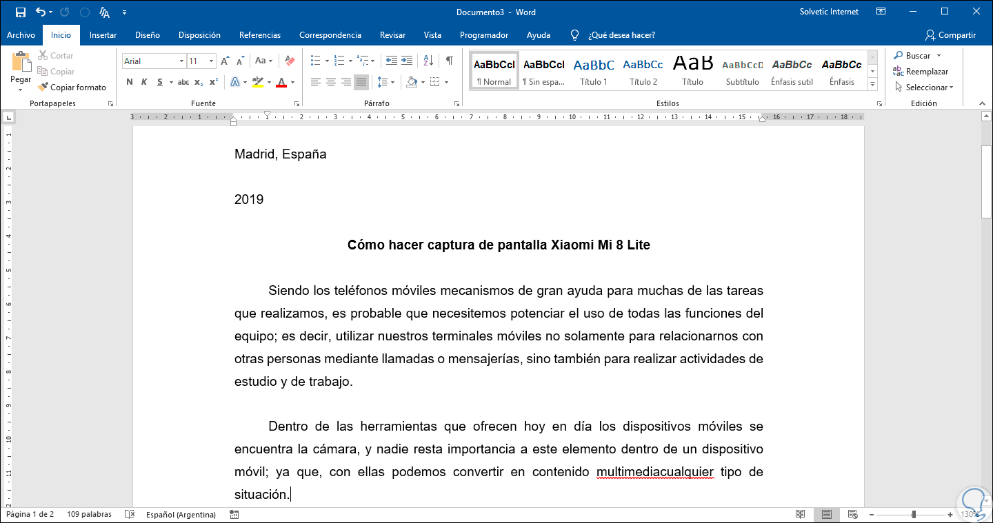 Al realizar esto, en el texto que ingresemos directamente o sea copia, notaremos que la primera línea difiere de las demás gracias a la sangría: