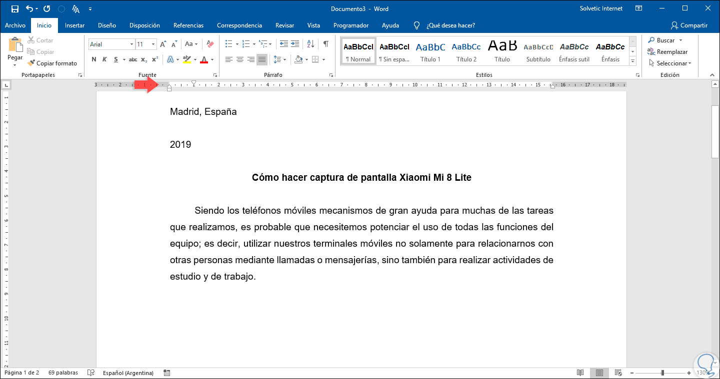 1. Poner sangría usando la regla en Microsoft Word 2019
