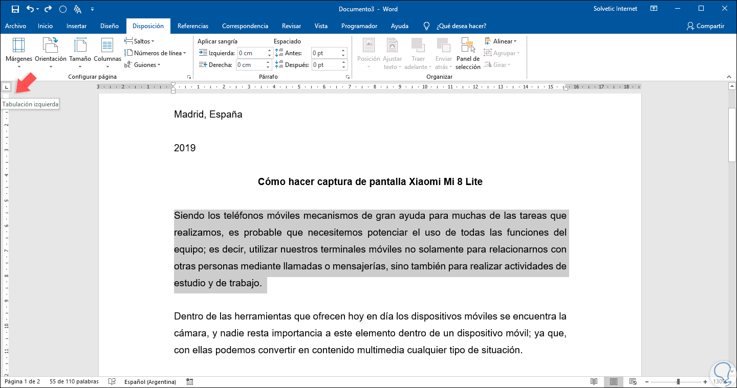 2. Poner sangría usando tecla Tab en Microsoft Word 2019