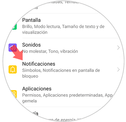 Dentro de los ajustes del terminal, deberás buscar la opción que sale como “Notificaciones”, debajo de Sonidos.