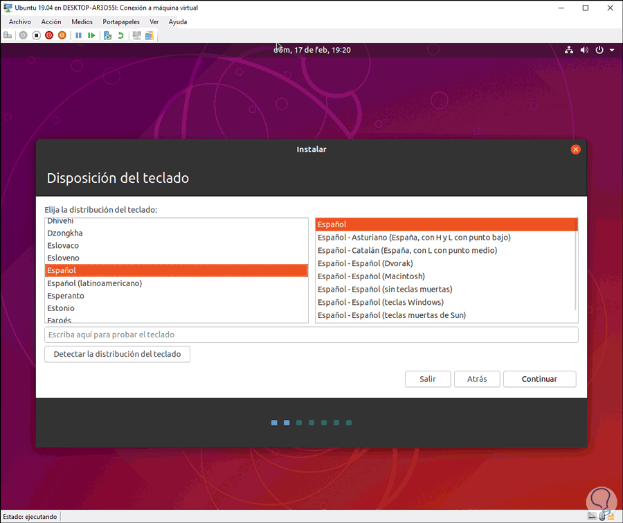 Allí pulsamos en Continuar y ahora definiremos el idioma del teclado: